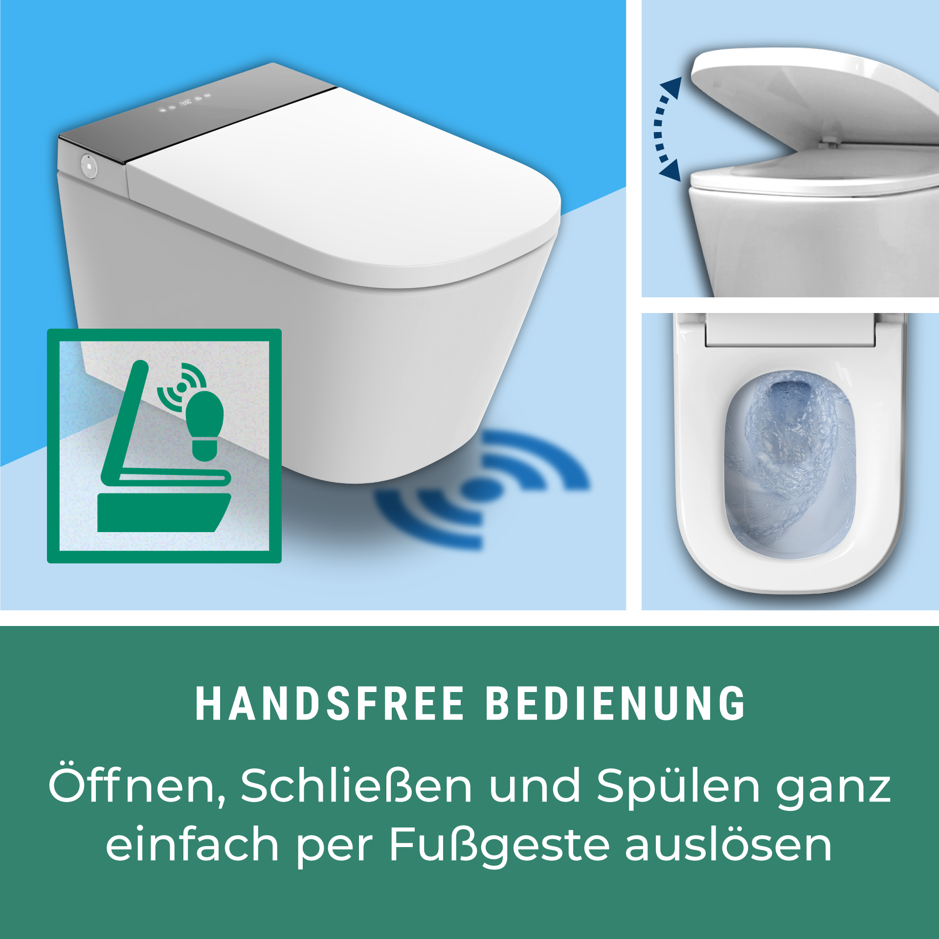 WELTNEUHEIT: Florence Dusch WC • erstes echtes handsfree Dusch WC berührungsloses Öffnen und Schließen des Deckels nach Wahl über Fuß- oder Annäherungssensor Höchster Funktionsumfang eines Dusch WCs