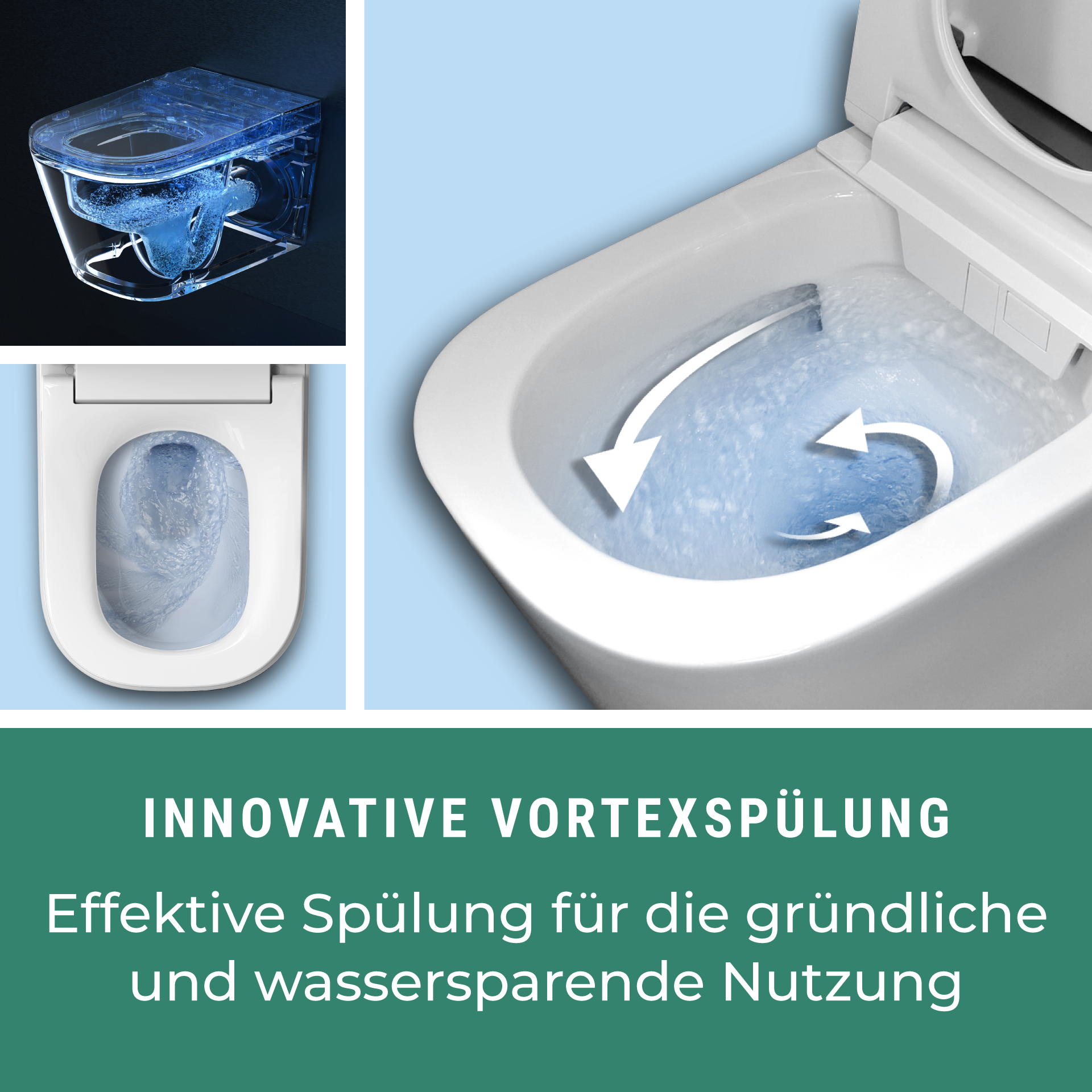 Ausstattung Vorwandelement: NEU mit Autospülen • inklusive Betätigungsplatte nach Wahl • aufwändige Pulverbeschichtung des Stahlrahmens • korrosionsbeständig • kraftvolle, effiziente 2 Mengen-Auto-Spülung ab 4,2 l • sehr geräuscharm